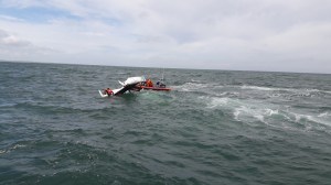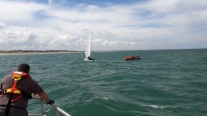 13h50 Le catamaran est en bon état, il retourne vers Dives escorté par le 614 avec ses équipiers
