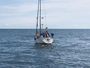 12h26 plongeurs en surface hélice dégagée récupération plongeurs essais RAS au niveau del’arbre voilier poursuit sa route vers CHERBOURG LIBERTE DE MANOEUVRE à la SNS091 ROUTE OISTREHAM