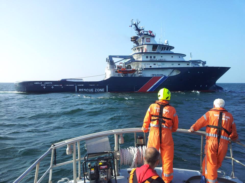 22h55 Prise en remorque du chalutier par l’Abeille par le portique arrière