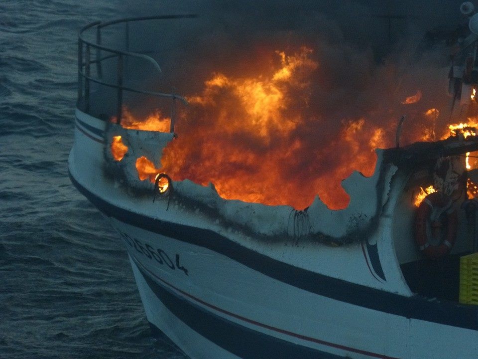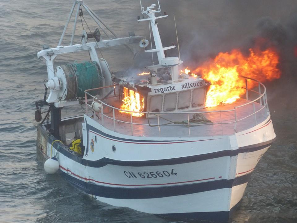 14h05 Appareillé pour incendie sur chalutier 49°26 et 00° 43W